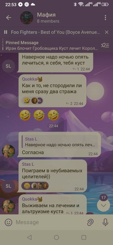 Когда мирного или одиночку в Мафии убивают, он может продолжить отыгрывать в теме Пристанище Душ!